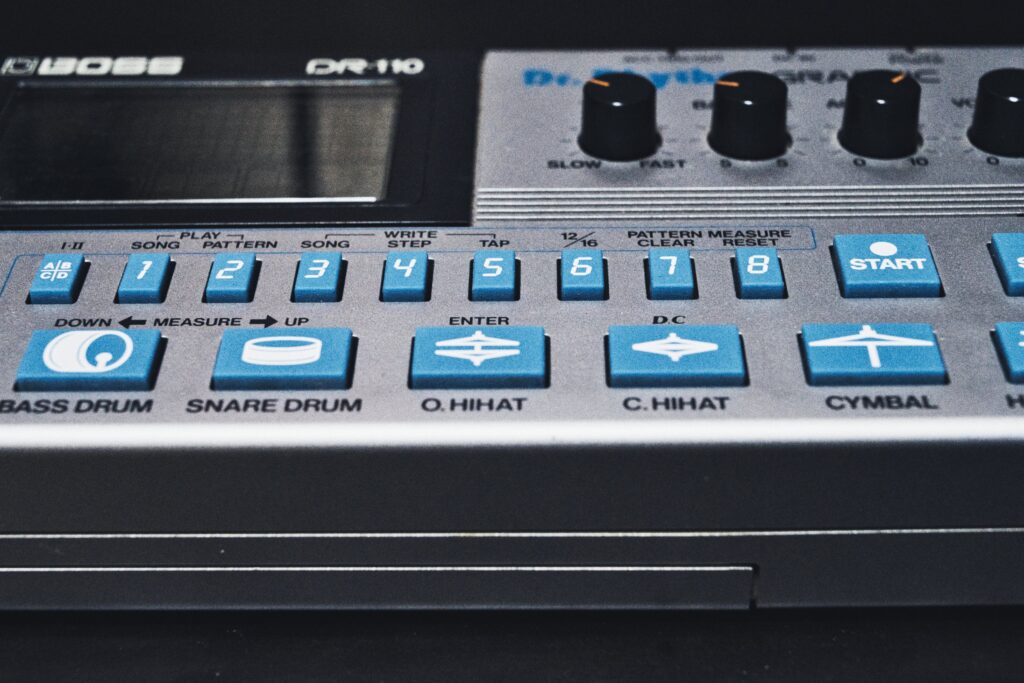 (TR-808をギュッと圧縮したような渋いルックスのリズムマシン!)